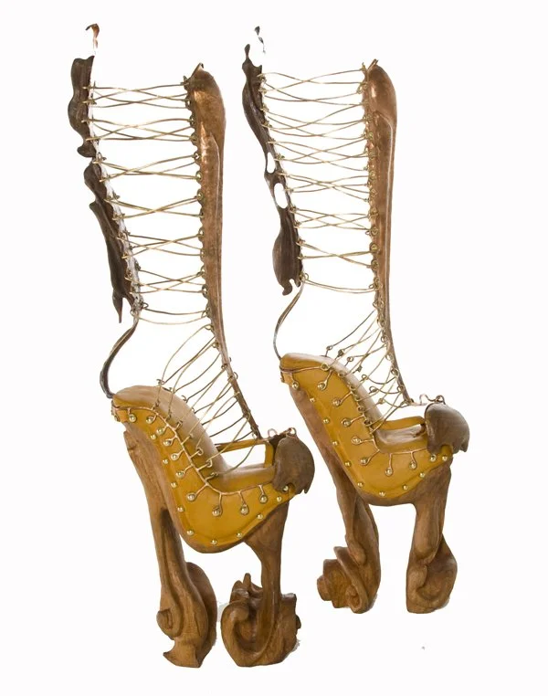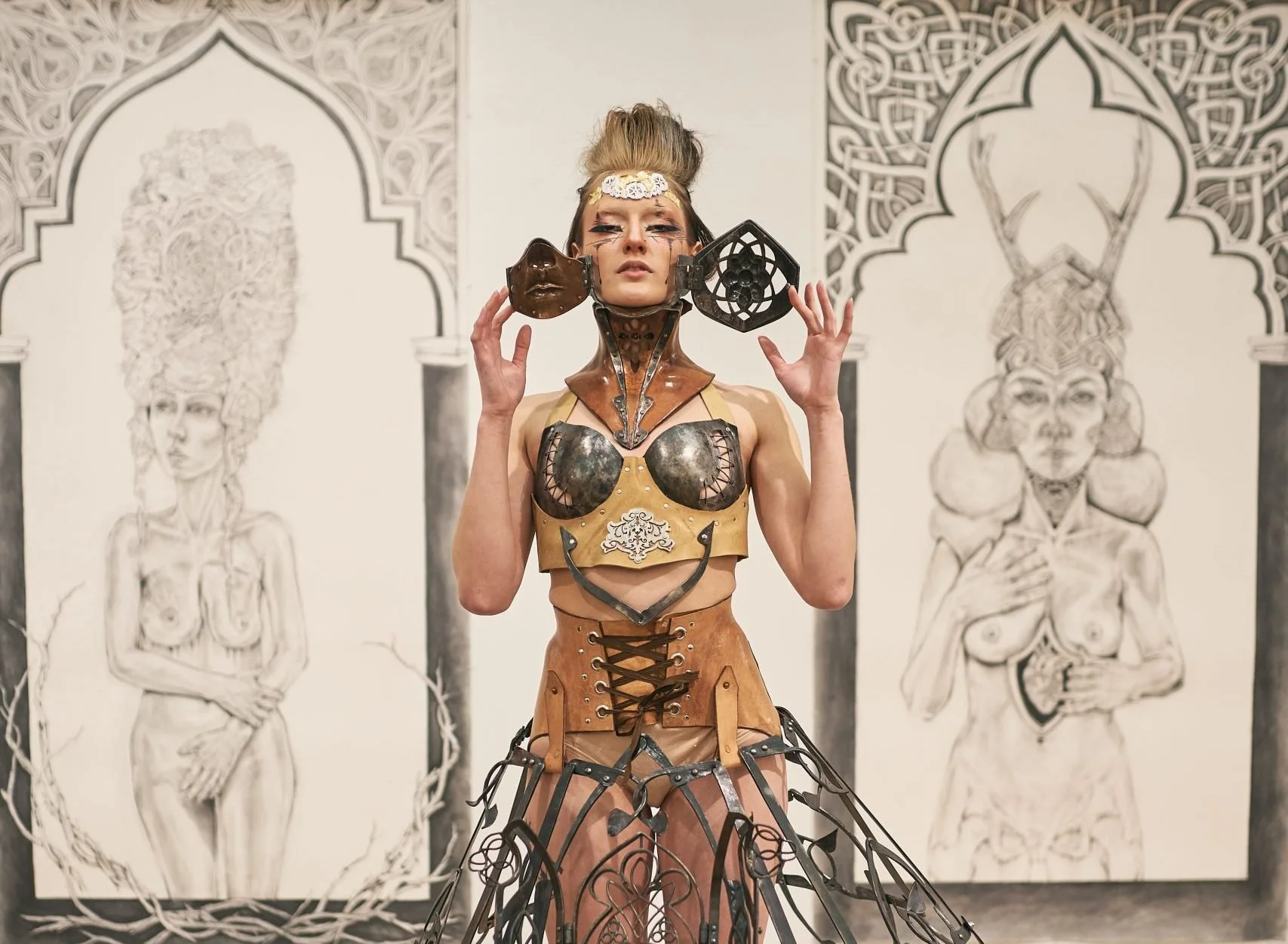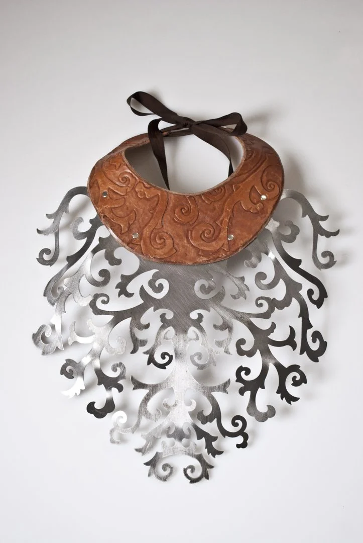 Durkan states how the pieces she creates can feel “emotionally empty when just made for display, but when people put the pieces on the dynamic shifts, and there is a sense of power that takes place.” Her designs consist of various metals such as iron, copper, and steel that she combines with other textiles such as leather and lace to create caged dresses, corsets, bustiers, as well as adornments such as cuffs, collars, necklaces, earrings, shoes, and hair accessories. The influences that drive her designs bear the traits of romanticism and the gothic sublime that meet head on with the unconventional and extraordinary of avant-garde design. She is not one however who likes to be categorized, and claims to have a host of influences that range from individual artists and designers to wallpaper designs. Her creations move from metal art to forged fashion as an embodied experience. Her forged fashion is raw and evocative and intended to be performative and visceral, which is why her art perhaps is so radical to some in the blacksmith world.